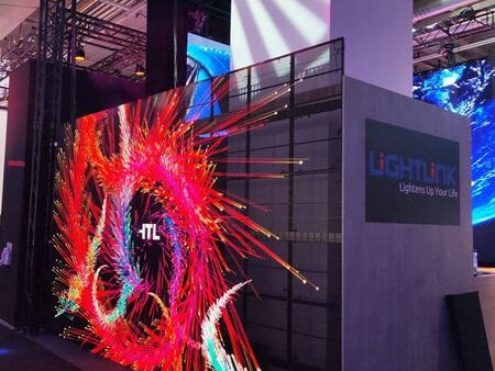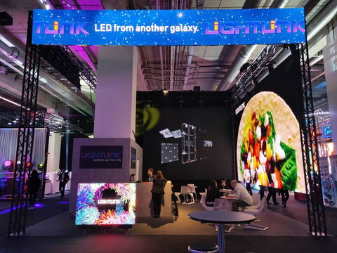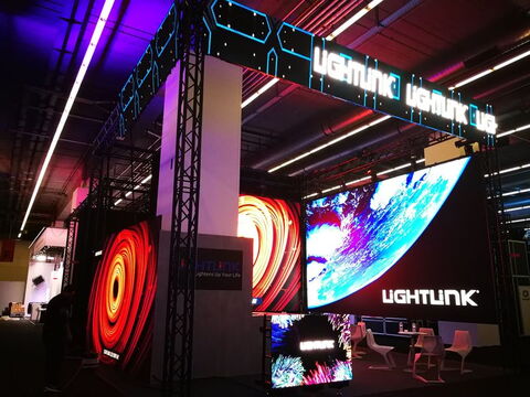 An unserem Stand stellen wir unsere neusten Produktreihen vor. An allen Seiten unseres Messestands sind Lightlink LED Displays verbaut.